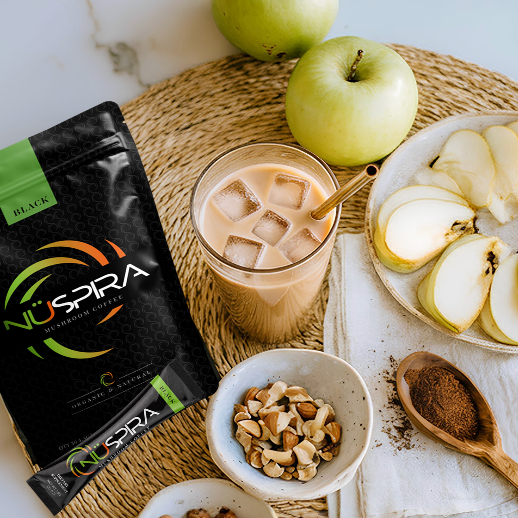 - Morning energy & focus* — Black Mushroom Coffee with a 6-mushroom blend for a smooth, steady lift.